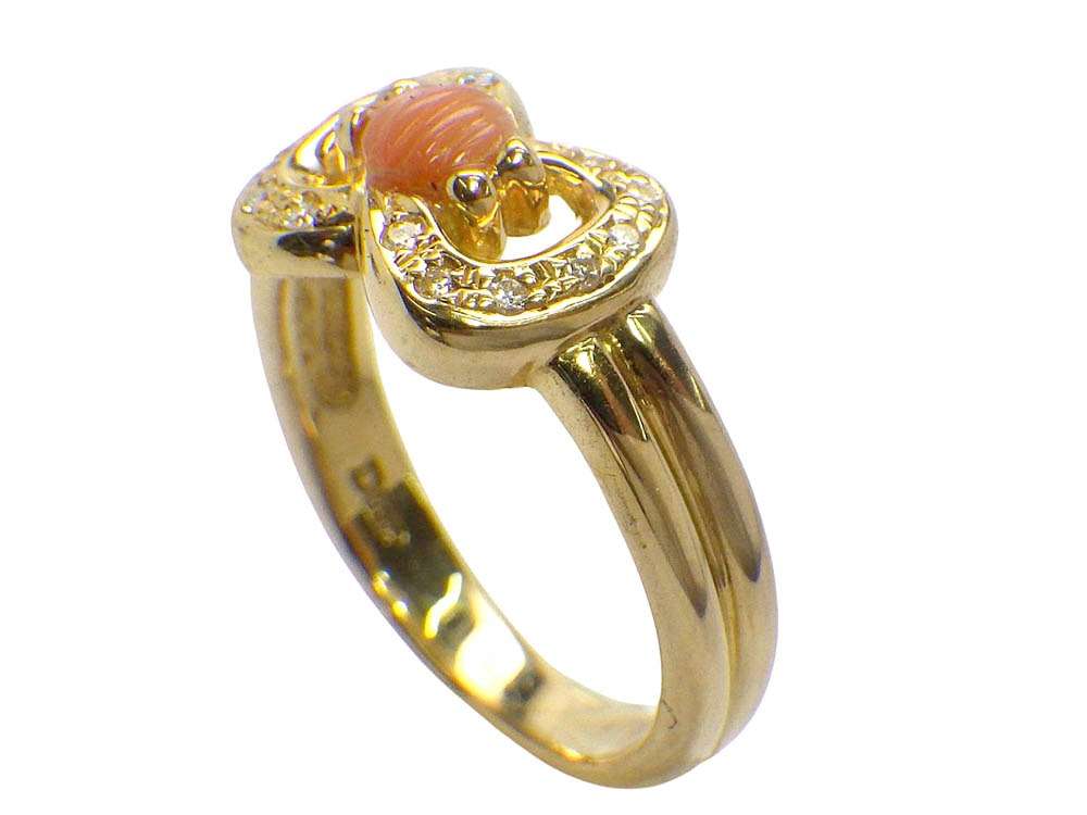 ディオール【Dior】750 サンゴ ダイヤ14P 4.37g 11号