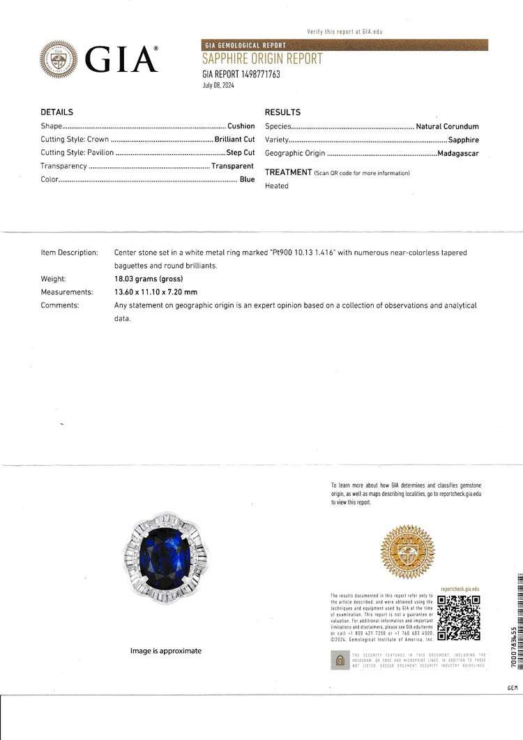 マダガスカル産サファイア ダイヤモンドリング Pt900 17.81g 6号 GIA鑑別書付き Jewelry Madagascar Sapphire10.13ct Dia1.416ct Ring