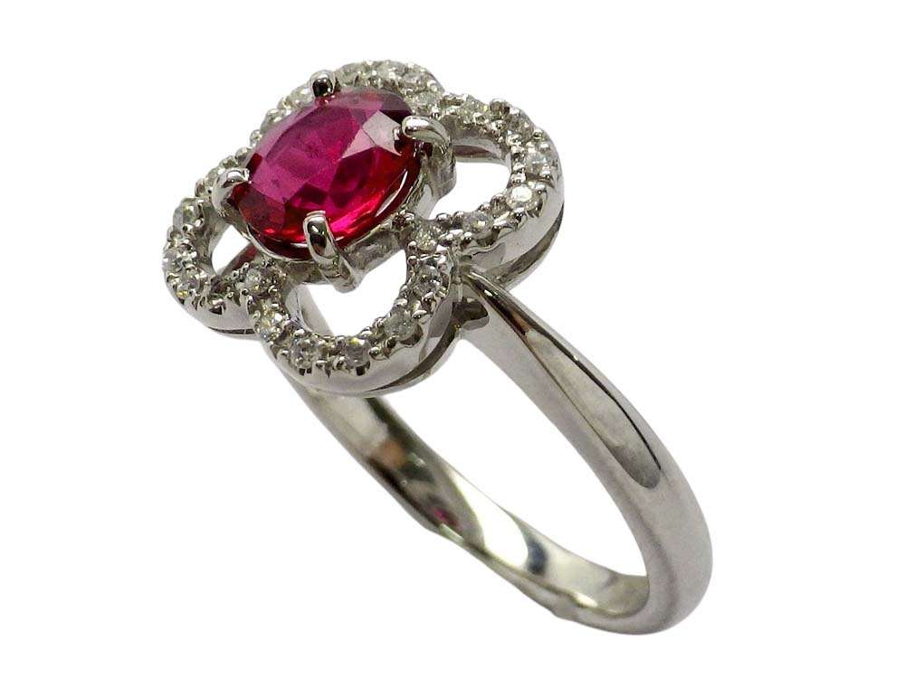 0.73ctと程よい大きさのルビーの回りをダイヤで囲んだ可愛いリングです。