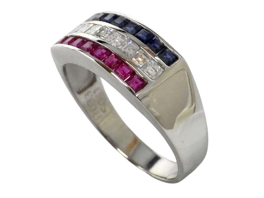 トリコロールリング Pt900 5.03g 15号 Jewelry Ruby0.33ct Sapphire0.41ct Dia0.35ct Ring
