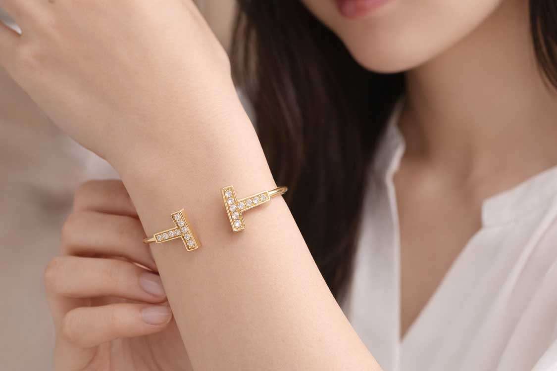 ある高級ブランドのデザインのようなダイヤ入りのバングルが入荷いたしました。