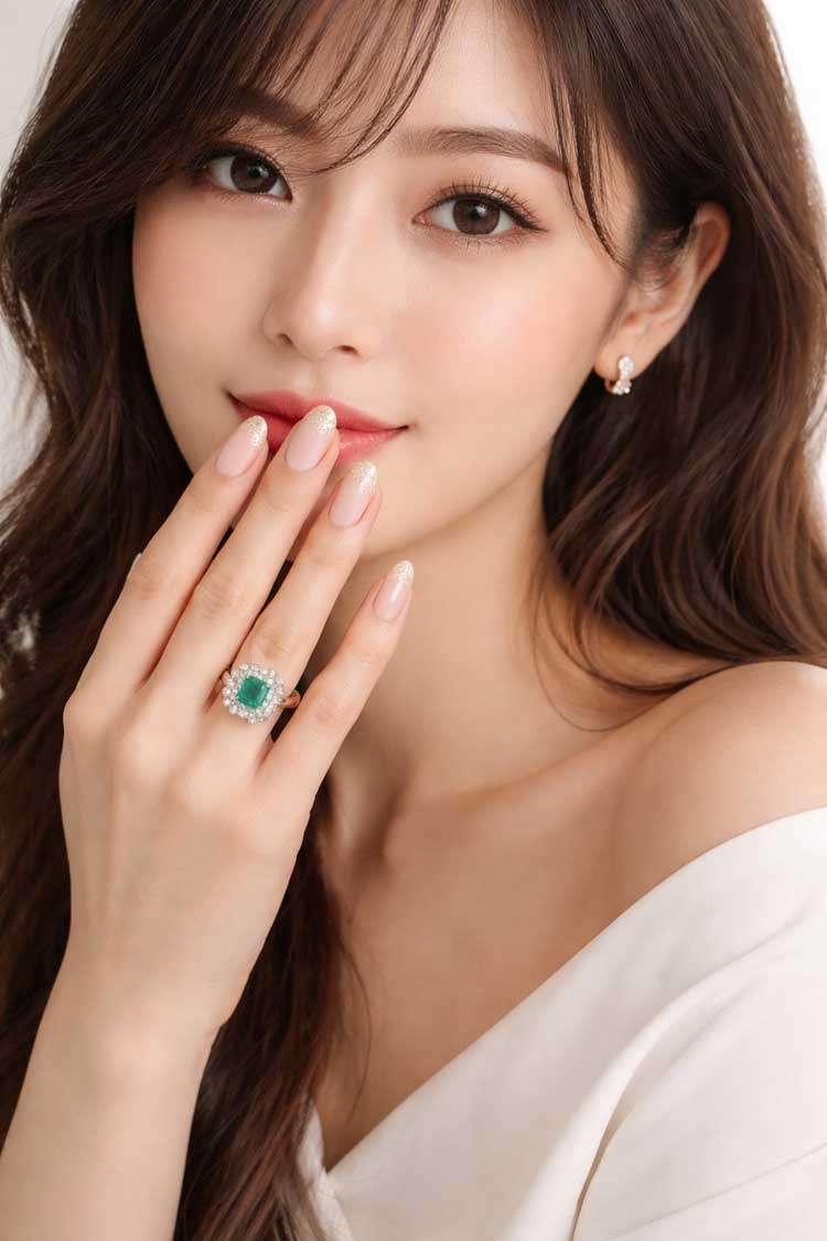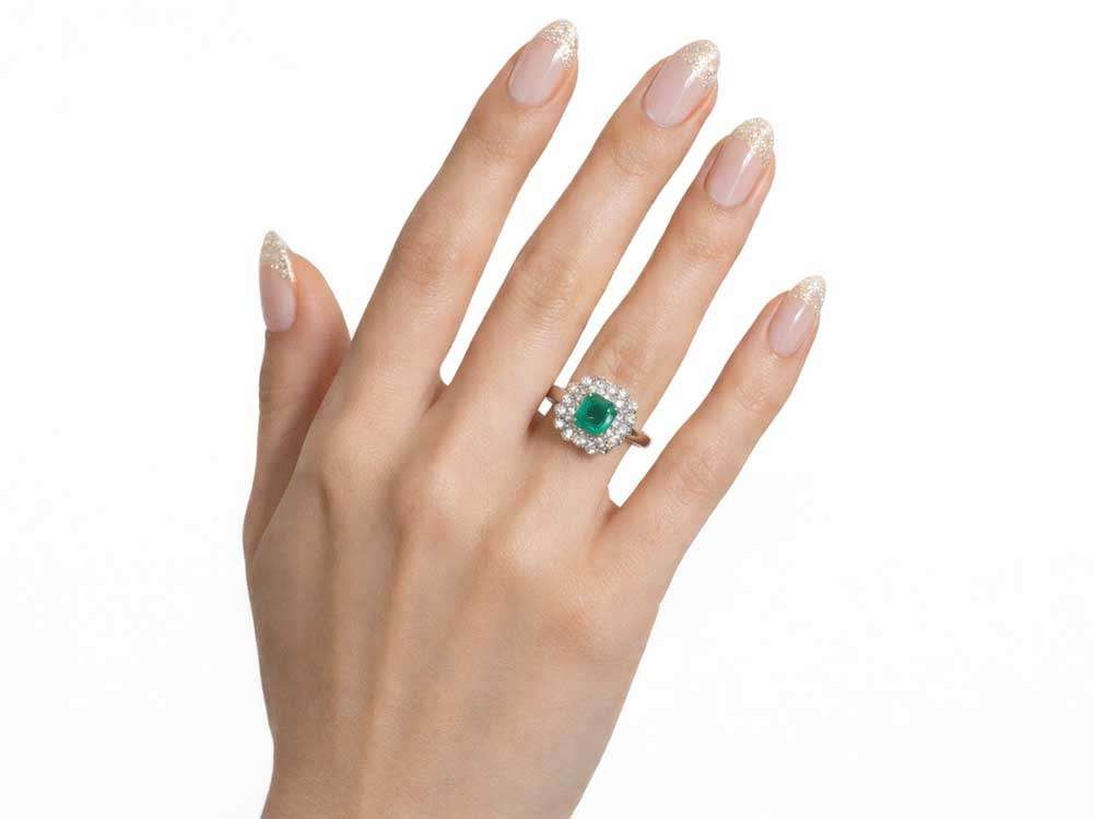 1.104ctと程よい大きさのエメラルドを0.854ctの綺麗なダイヤモンドで取り巻いた